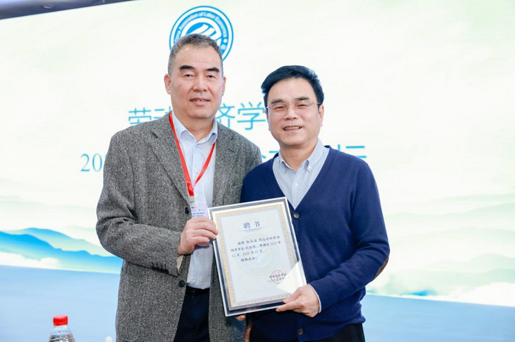 劳动经济学会秘书长张彦海(左)为张俊森副会长(右)颁发聘书